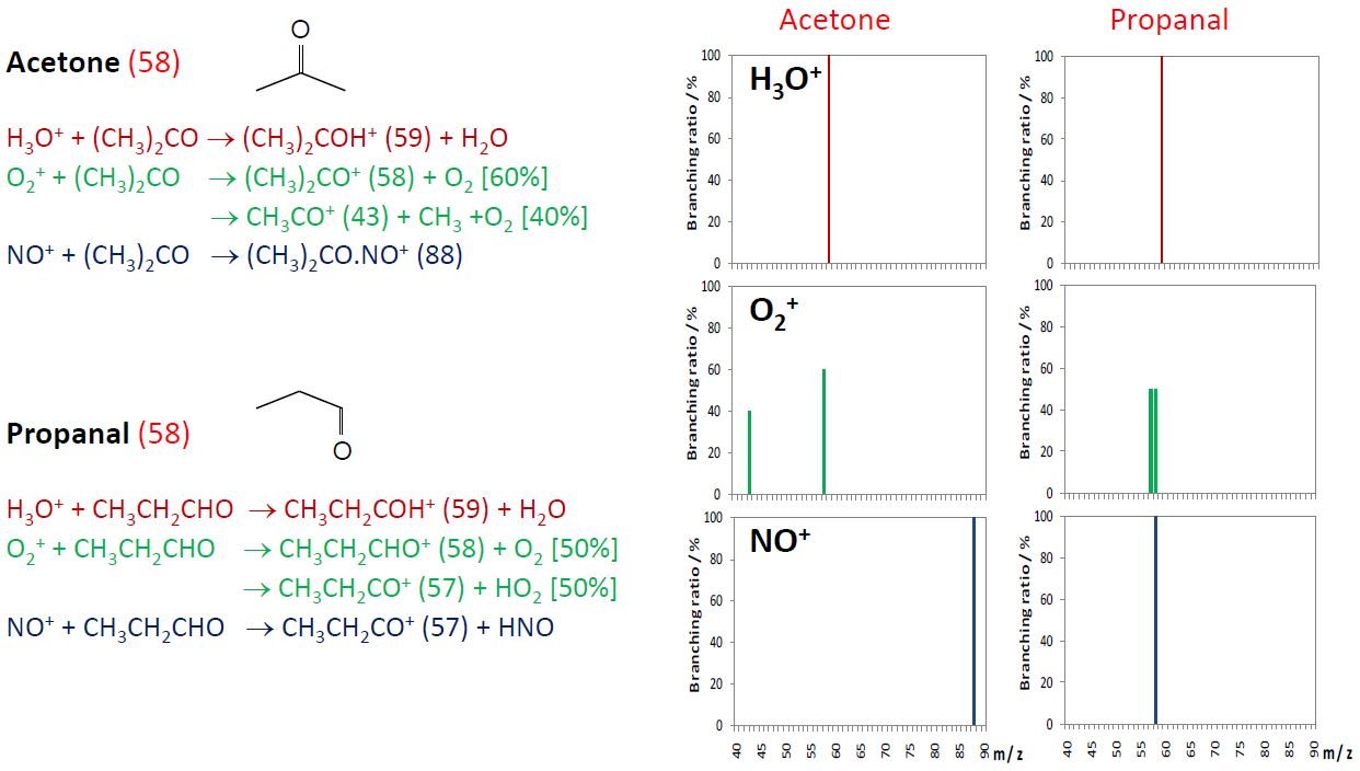 | 주요반응 메커니즘 H3O+ : proton transfer (PT) NO+ : electron transfer(ET), association, hydride abstraction O2+ : elctron transfer(ET), dissociative ET |